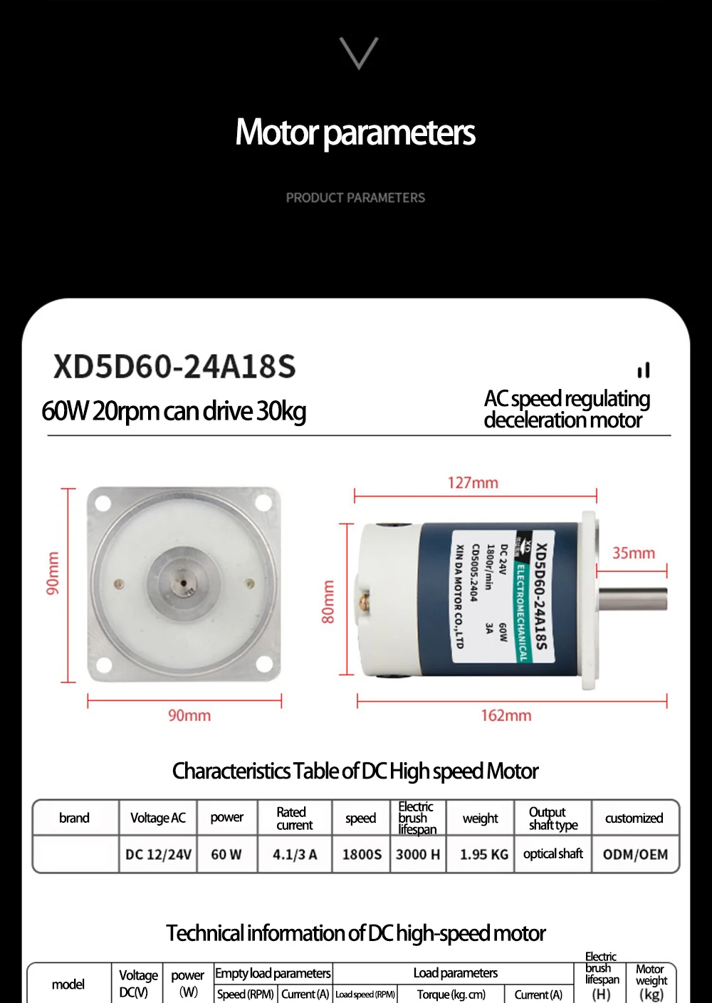 No-load speed of the motor2100rpm, load speed of the motor1800rpm.