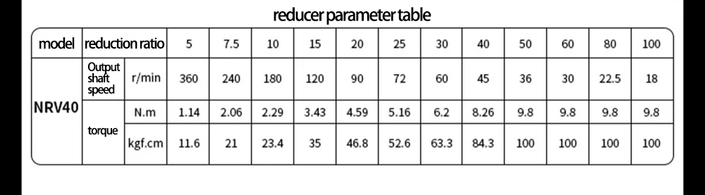 - Speed ratio: 5:1,7.5:1,10:1,15:1,20:1,25:1,30:1,40:1,50:1,60:1,80:1,100:1