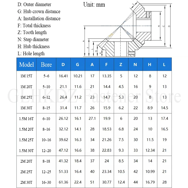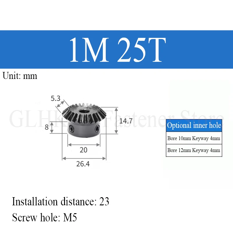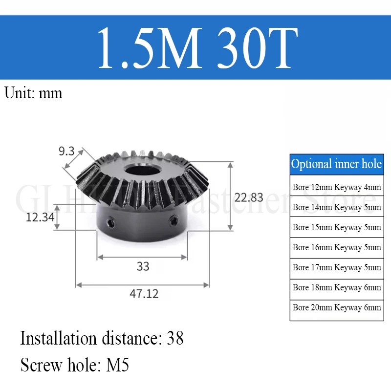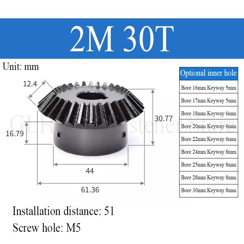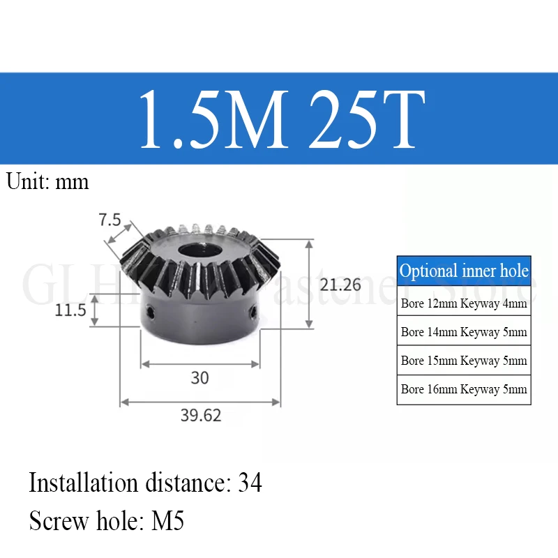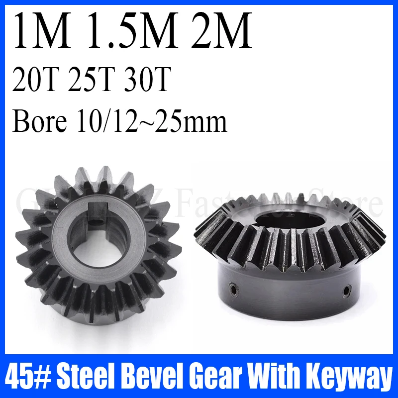 1PCS Bevel Gear 1M 1.5M 2M 20/25/30 Teeth Bore 10/12/14/15~25mm Keyway 4/5/6/8mm 90 Degree Meshing Angle Steel Gear 45# Steel
