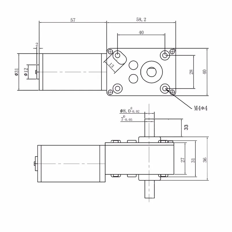 Bringsmart Double Shaft 33MM Length 5840-31zy DC 12V 24V Worm Gear Motor Self Lock 12-470RPM Reducer Gearbox Customized Motor