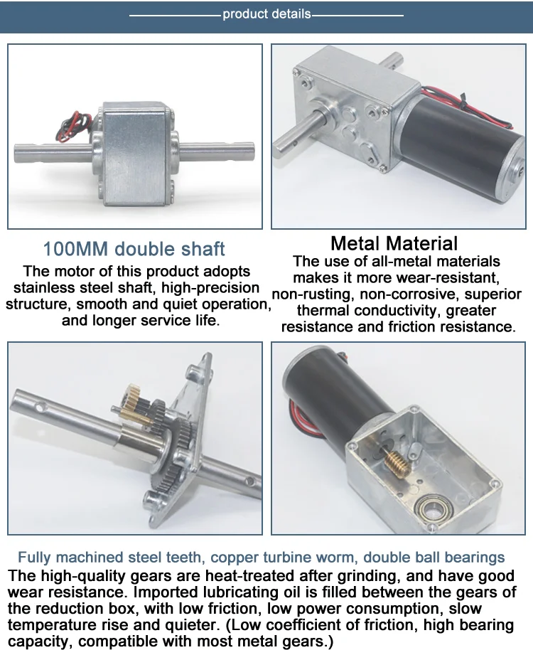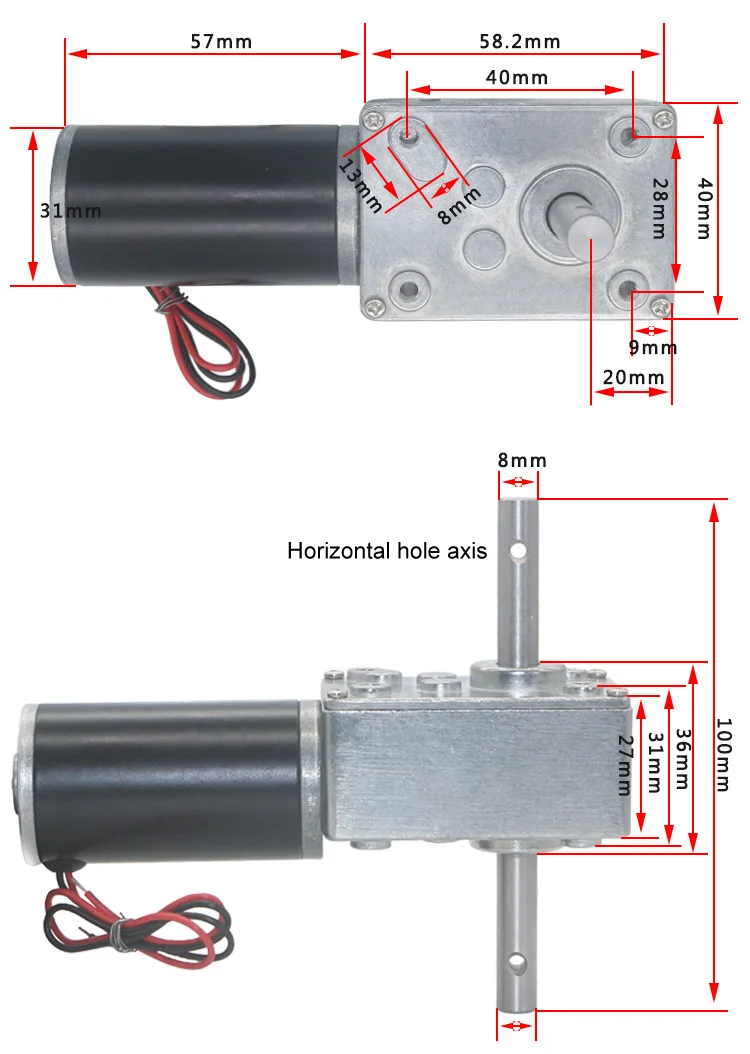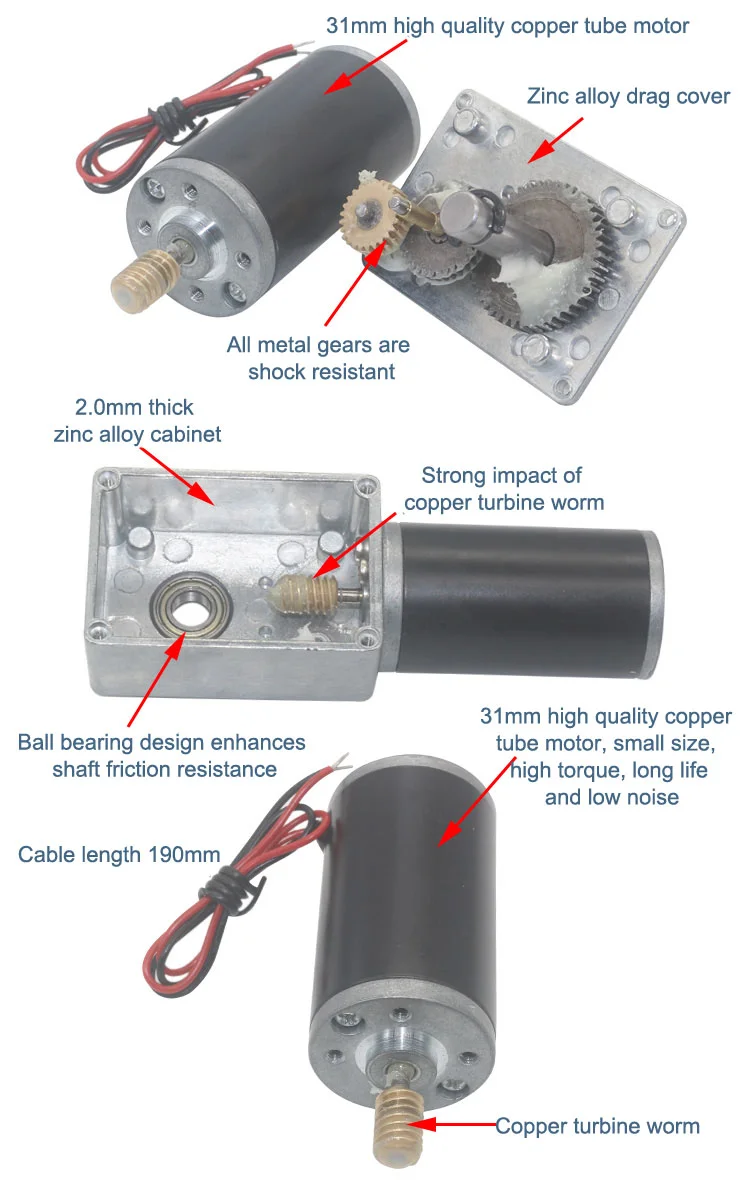 Bringsmart Double Shaft 33MM Length 5840-31zy DC 12V 24V Worm Gear Motor Self Lock 12-470RPM Reducer Gearbox Customized Motor