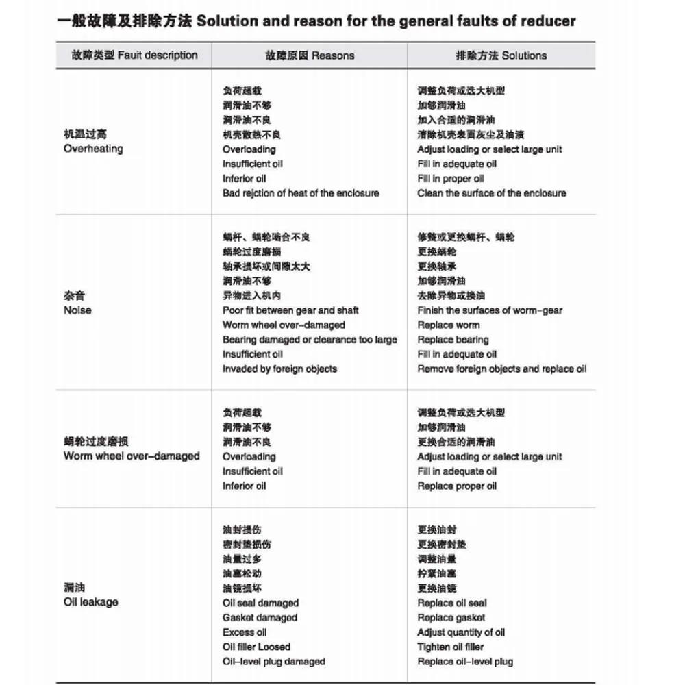 -La velocità di ingresso della vite senza fine e non più di 1500r/min. Velocità eccessiva farà sì che la ruota una vite senza fine per usura e l’aumento di temperatura del corpo e troppo alta, che influenzerà la vita di servizio del riduttore.